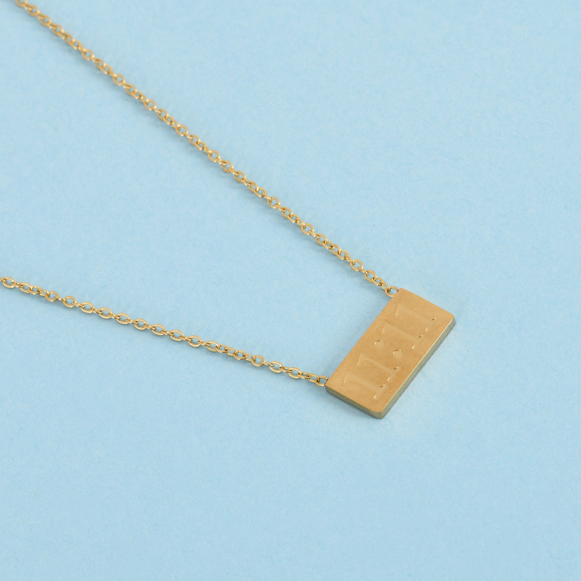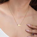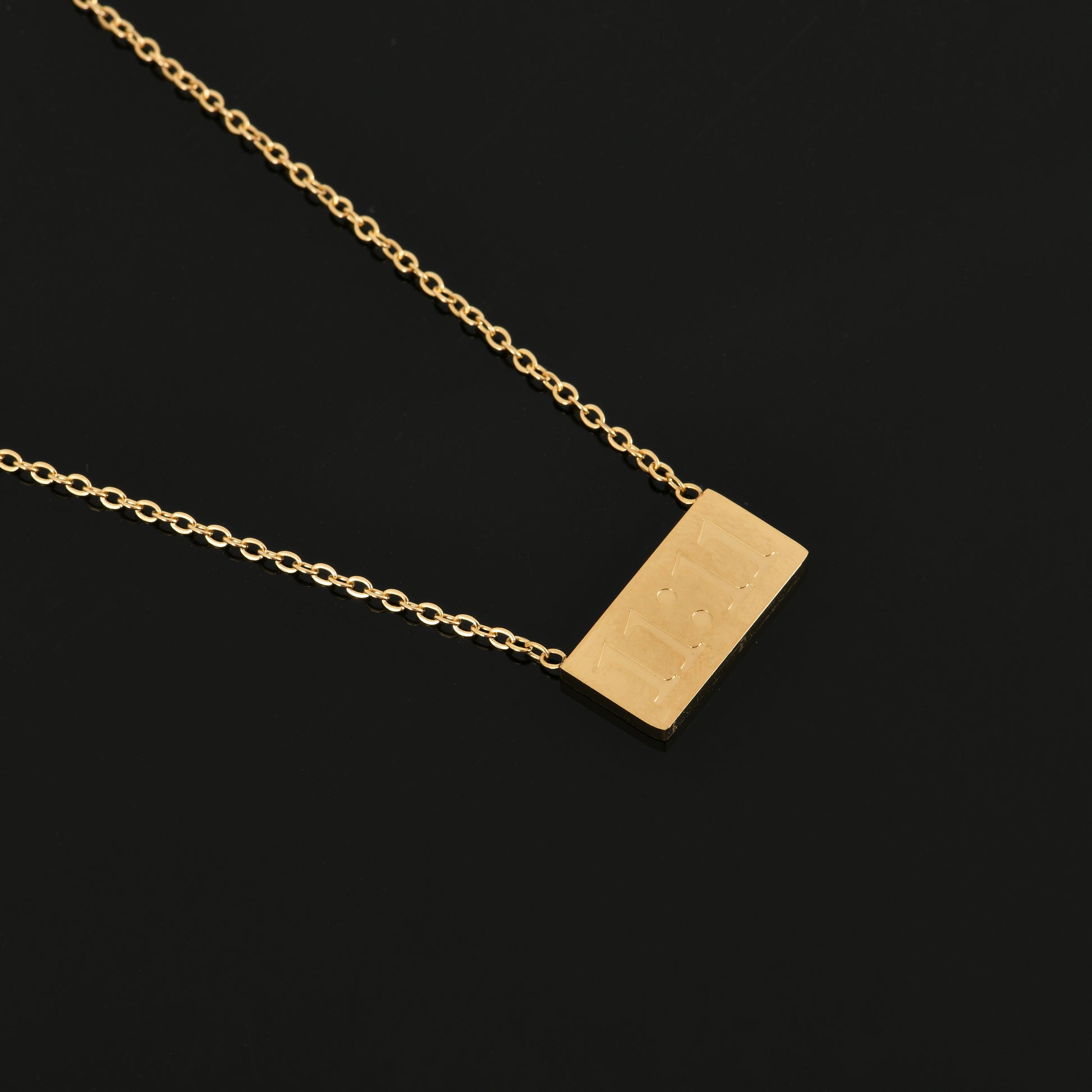 The necklace features a sleek, minimalist design that's perfect for layering or wearing on its own. It’s a meaningful piece of jewelry that adds a personal touch to any outfit.