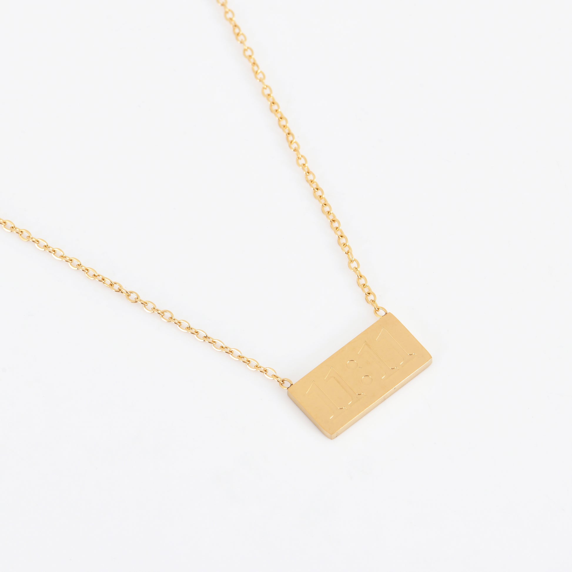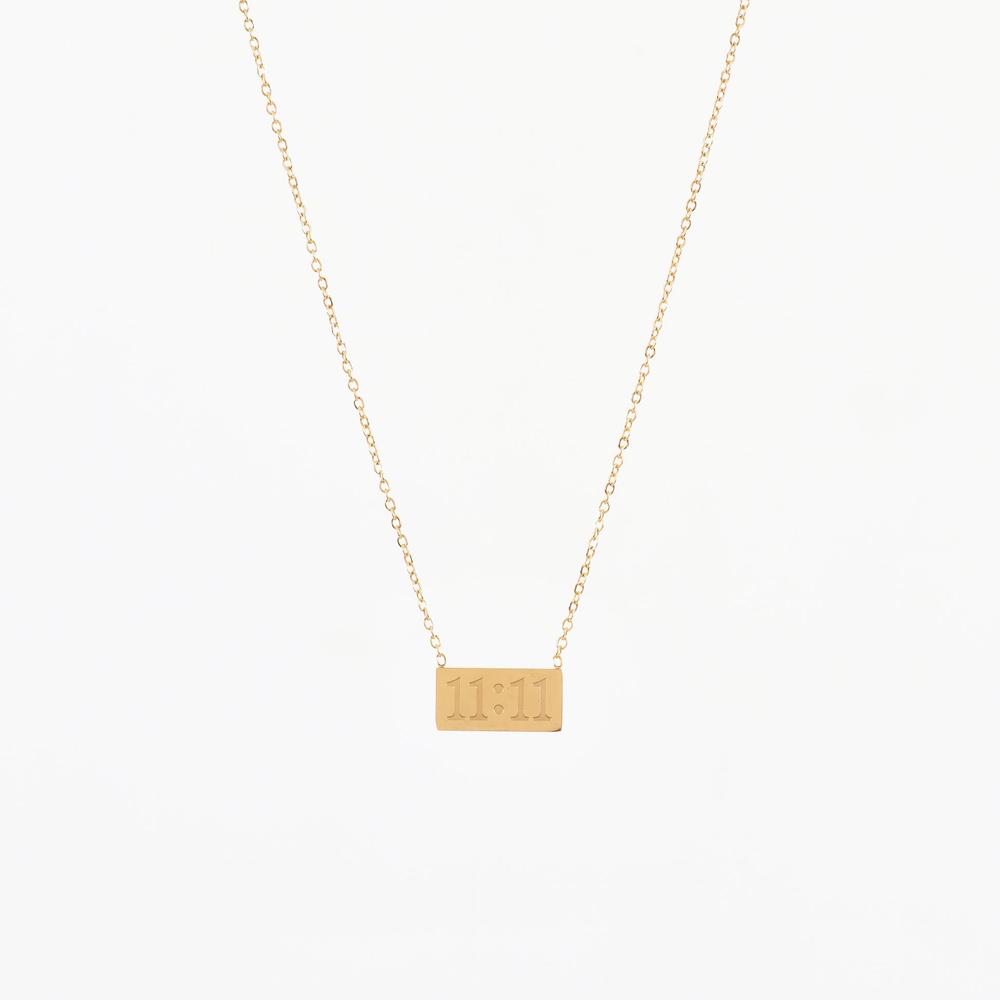 Capture a moment of magic with our 11:11 Angel Number Bar Necklace. When you see 11:11 on a clock, it's often a sign of alignment, new beginnings, and good fortune. This elegant bar necklace is a beautiful reminder to stay positive and trust in the universe.