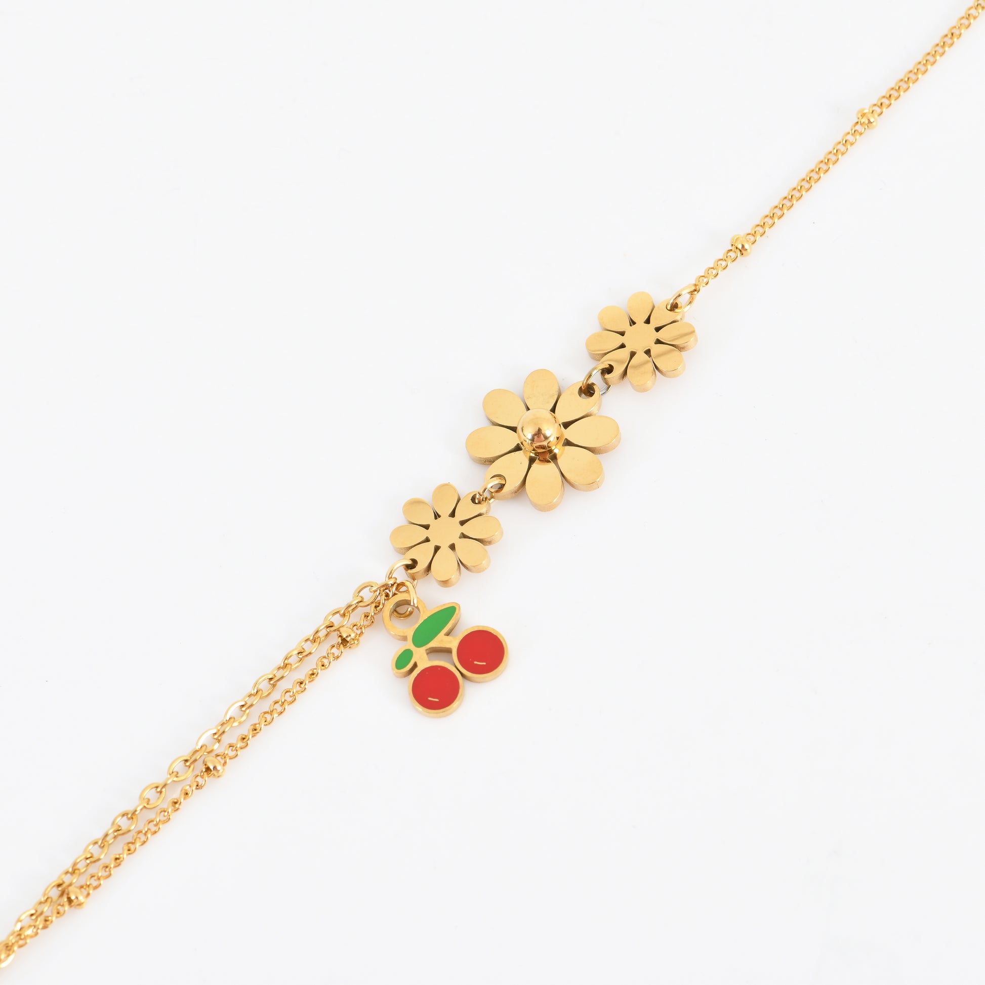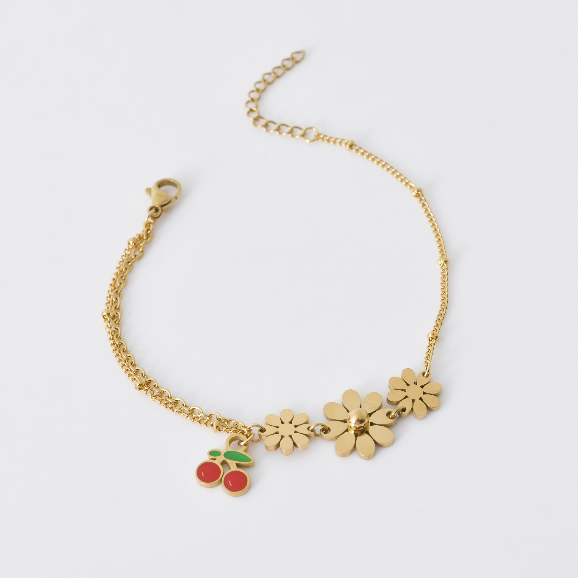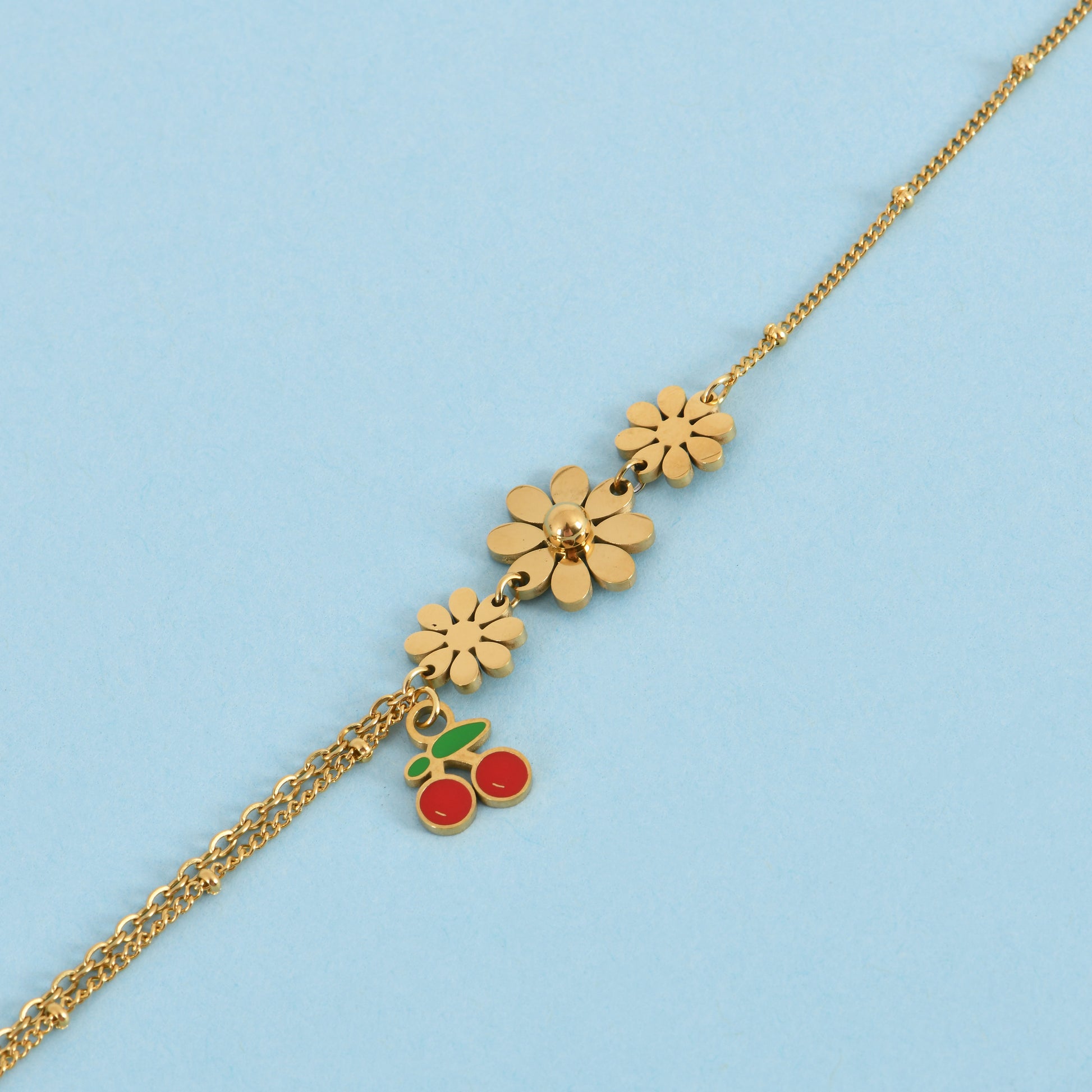 Delicate Gold-Plated Cherry & Daisy Bracelet