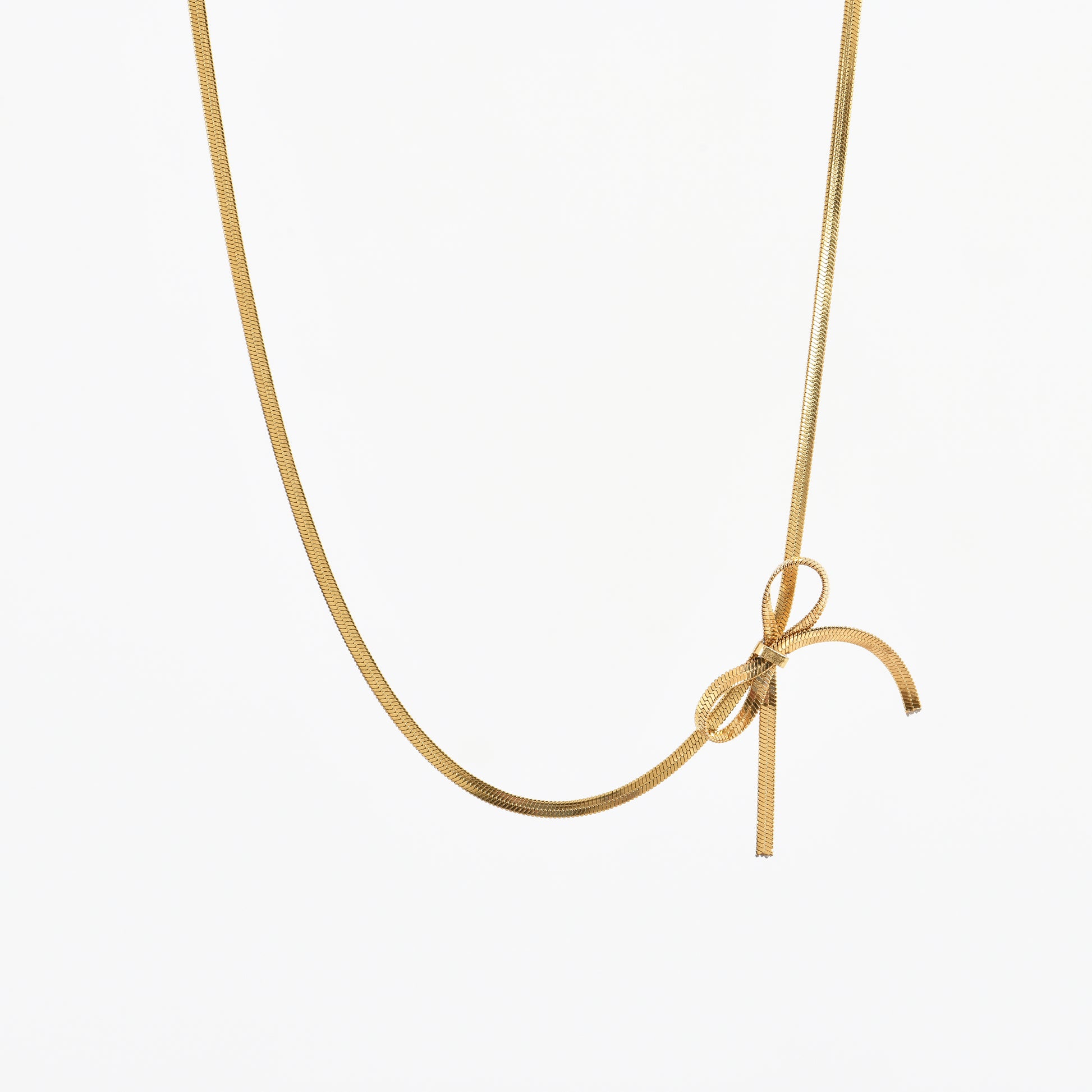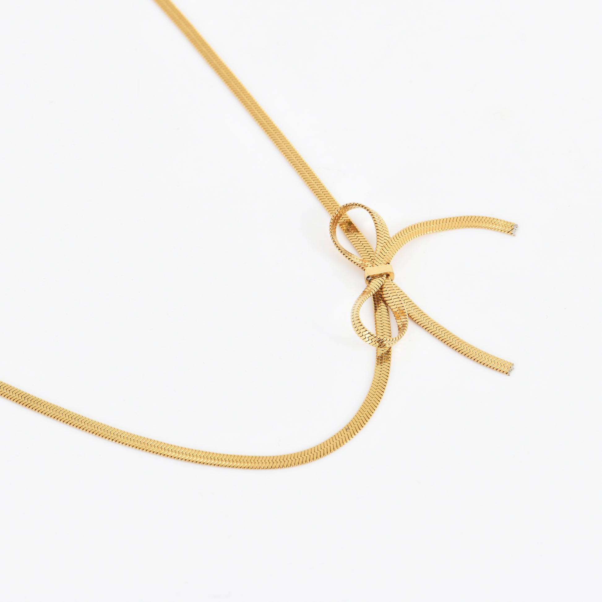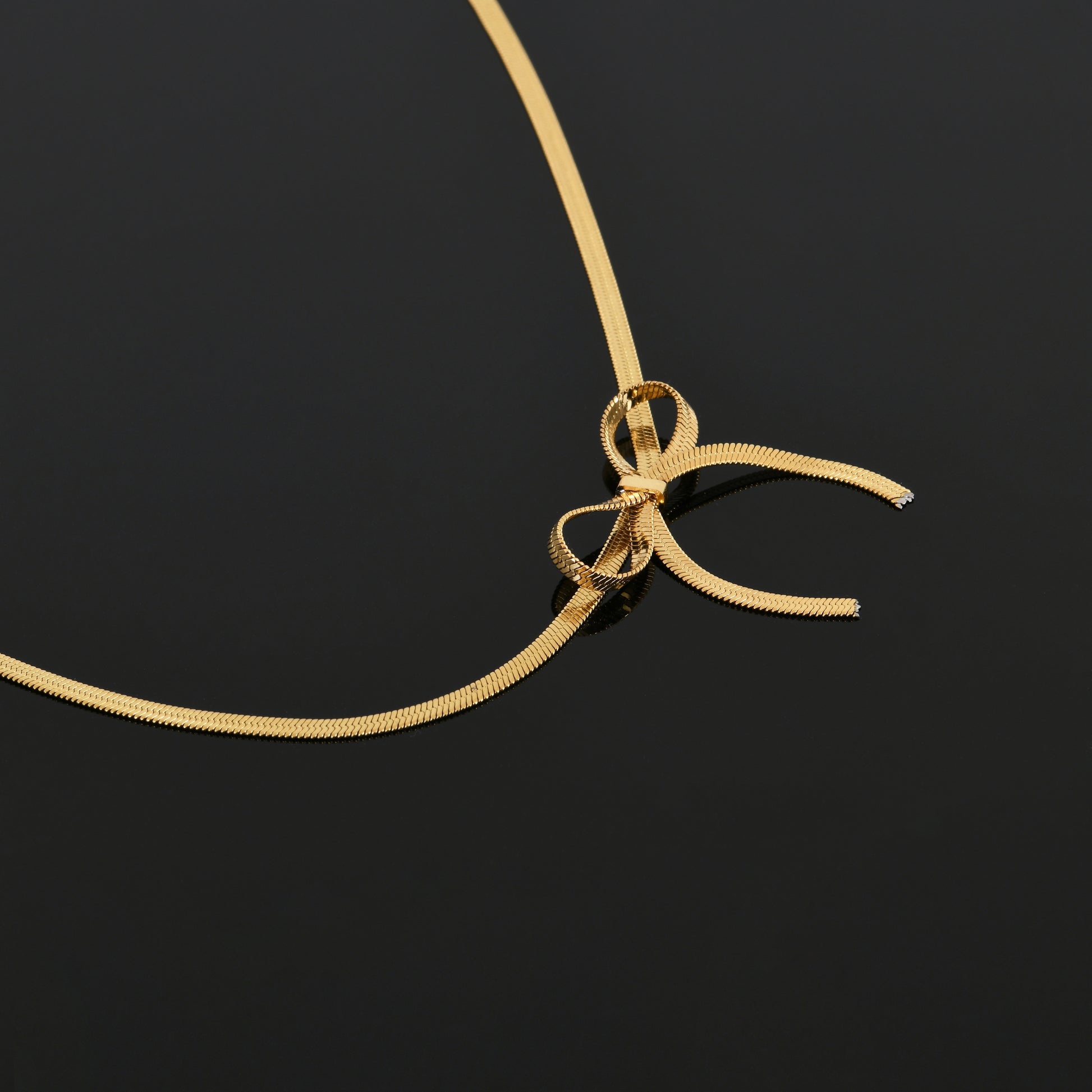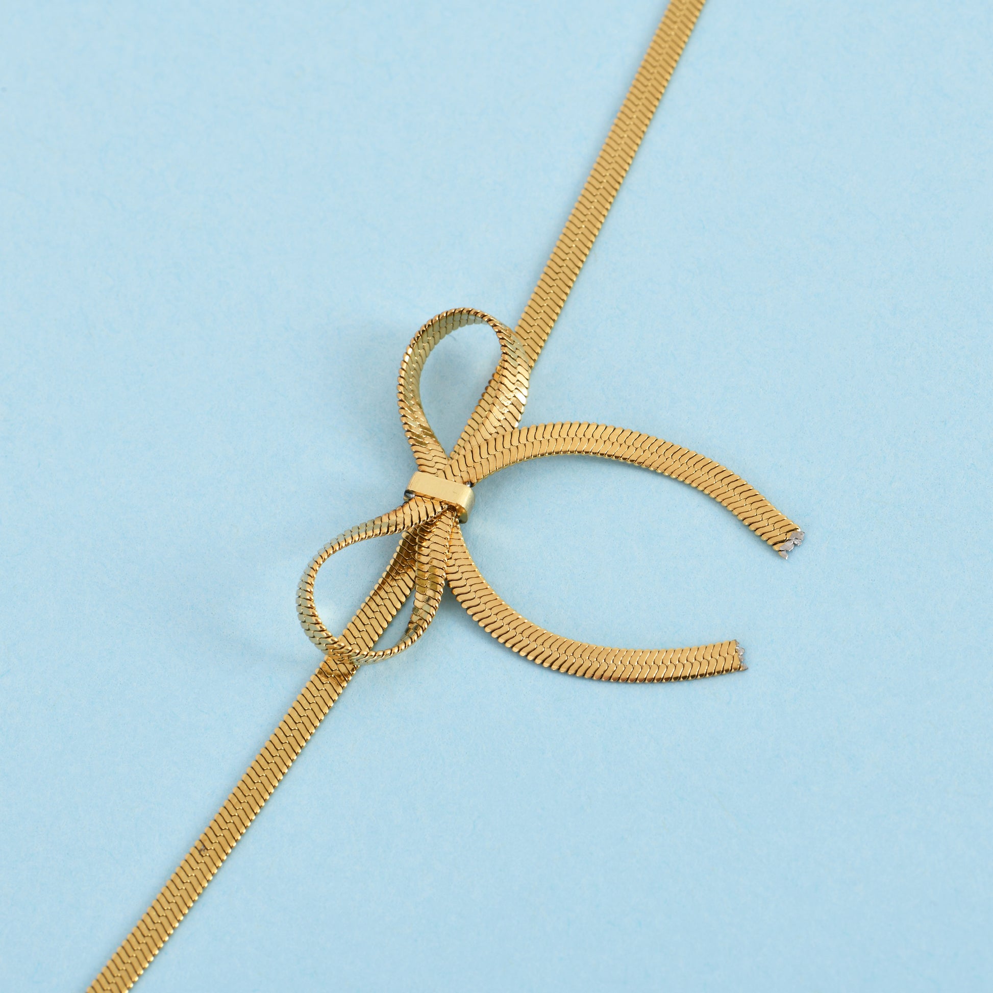 Delicate yet striking – the Gold Knot Necklace is designed to symbolize elegance and grace. Crafted in a minimal bow-knot silhouette with a high-polish gold-tone finish, this piece adds a subtle charm to your neckline.